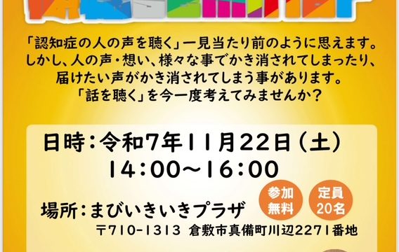 活動報告 はるそらゼミナールを開催しました(R7.11.22) 皆さま、お久しぶりです。長らく更新をお休みしておりましたが、少しずつ再開していきます。11月22日に、傾聴ボランティア「とよあけ」代表の小菅もと子さんをお招きし、認知症の人の「声を聴く」を考える傾聴セミナーを開催しました。介護家族や専門職の... 2025.12.03 活動報告